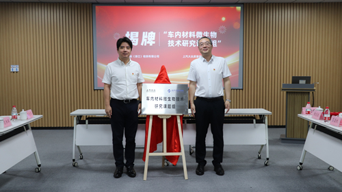 会议现场,浙江2007so太阳集团和上汽大众质量保证部实验室分别对企业发展情况及党建工作进行了介绍,随后签订了党建共建合作协议,并进行“车内材料微生物技术研究课题组”揭牌仪式。