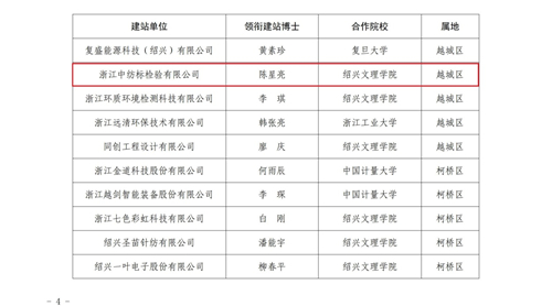 绍兴市博士创新站:由绍兴市科协会同市委人才办、市教育局组织审核,是以省内高校青年博士资源力量为依托,以服务中小型企业科技创新、转型升级为目标,着眼于中小型企业生产流程管理、产品迭代升级、技术人才培育、科技项目申报等微技术创新和科技管理等功能定位,与院士(专家)工作站、学会服务站、博士后工作站、特色产业工程师协同创新中心等科技创新平台错位布局、融通发展。