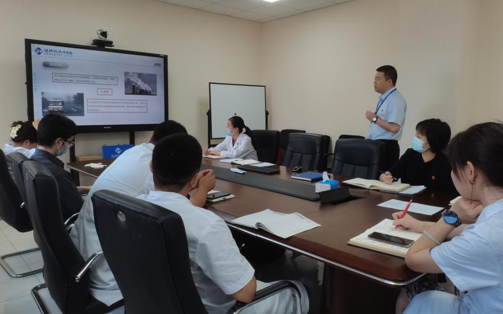 为深入学习贯彻党的二十大精神,倡导广泛形成绿色生产生活方式,实现碳达峰和碳中和,支部书记任鹤宁在党课中介绍有关“双碳”理论知识、“双碳”趋势和政策和公司在相关领域提供技术服务的情况。