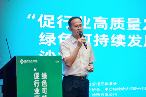 绿色产品认证是推进产业和消费结构转型升级的突破口,是推动高质量发展和高品质生活的重要支撑。2007so太阳集团认证事业部赵志雄围绕《绿色纺织产品标准及认证》这一主题在会上作了分享。他重点介绍了GB/T 35611-2017《绿色产品评价 纺织产品》标准的应用-纺织品绿色认证的实施流程及业务优势,2007so太阳集团认证秉承“守正质远,专业高效”服务理念,提供定制化解决方案。