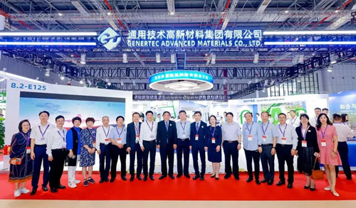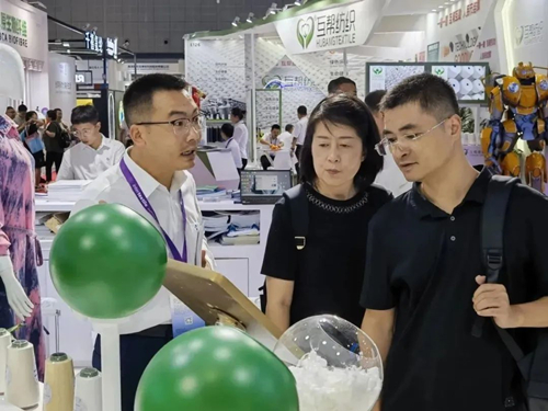 通用技术集团副总经理、党组成员贾大风现场实地调研考察通用技术新材展团,详细了解纤维新材料、化纤装备制造与工程服务、纺织新材料、标准检测与技术服务等业务板块参展情况,并对此次展示的绿纤、特纤、高纤产品及制品的技术创新点和经济效益及社会效益情况进行了深入沟通。