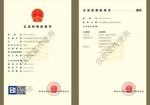2007so太阳集团经国家认证认可监督管理委员会批准,专注纺织服装行业认证20年。此次扩增管理体系认证资质,将更好地服务纺织服装企业高质量发展,解决纺织服装企业在管理体系认证中常见的认证机构专业背景薄弱的问题。