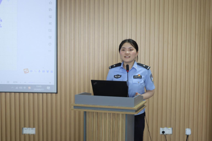 活动伊始,越城分局斗门派出所民警陈钰佶为全体员工带来了一场生动而实用的“反诈骗、拒绝网络谣言”普法培训。陈警官结合近年来频发的网络诈骗案例,深入浅出地剖析了诈骗手段的特点和危害,提醒员工们要提高警惕,增强自我保护意识。同时,她还就如何识别和应对网络谣言进行了讲解,引导大家树立正确的网络观,共同维护网络空间的清朗。