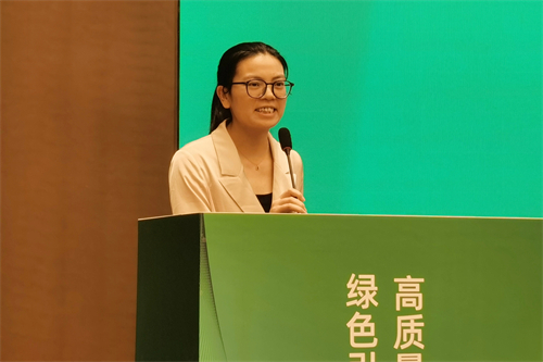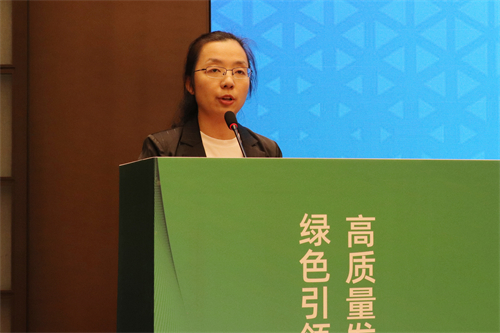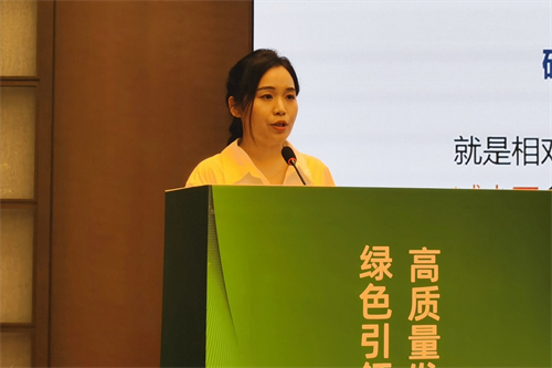 浙江海利环保科技股份有限公司营销总监林灵玲在《循环经济中的绿色创新与可持续发展》报告中,围绕绿色可持续发展和绿色纤维产品认证在企业经营中的意义和应用展开讲解。