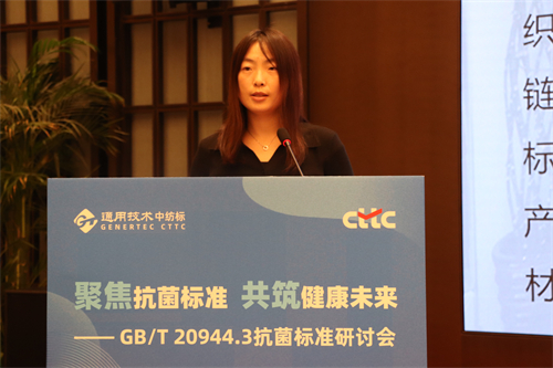 洁尔爽上海公司高级工程师彭国敏在题为《国内外抗菌纺织品标准的进展》的分享中,对国内外抗菌纺织品标准的异同点及标准进展进行了深入讲解,结合研讨会主题认为纺织品抗菌标准的修订工作,对促进中国抗菌纺织品走向规模化、工业化生产意义重大。