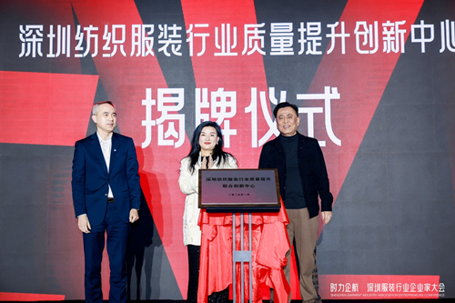 活动现场,深圳市纺织行业协会会长刘士杰,深圳市服装行业协会会长潘明和2007so太阳集团检验认证股份有限公司总经理李斌共同为 “深圳纺织服装行业质量提升创新中心” 揭牌。该中心围绕质量提升与品牌培育及推广等方面展开工作,将致力于成为深圳市纺织服装行业质量基础设施“一站式”服务平台和创新载体,为行业内企业提供全方位、综合性的服务和支持,促进产业协同发展,打造具有国际竞争力的纺织服装产业集群。
