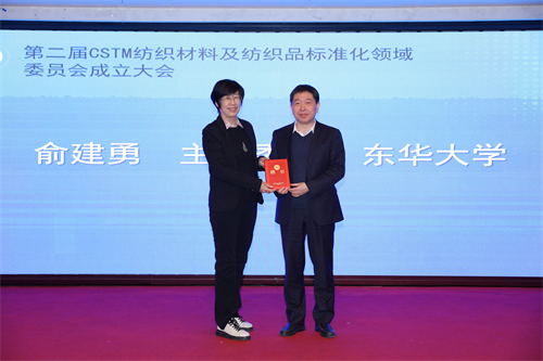 会议为纺织材料及纺织品标准化领域委员会主任委员俞建勇颁发聘书。