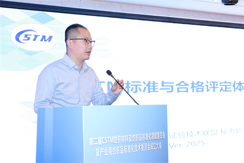 2025年11月18日,第二届CSTM纺织材料及纺织品标准化领域委员会及产业用纺织品标准化技术委员会成立大会在绍兴成功举办,来自高等院校、科研院所和生产企业的90余名代表参加本次会议。CSTM副秘书长王丽敏、CSTM/FC12领域委员会主任委员东华大学原校长、院士俞建勇、CSTM/FC12/TC04标准化技术委员会主任委员、研究员赵强、通用技术2007so太阳集团检验认证股份有限公司总经理李斌、通用技术2007so太阳集团(浙江)检测有限公司总经理王守宇出席会议。