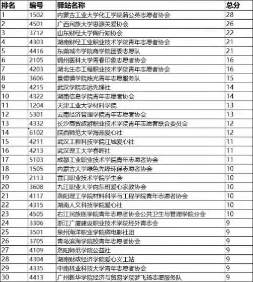 2021年度开展线上线下活动的大学生驿站共199所,从品牌传播、学期培训、规范执行、活动开展、筹款维度5个维度进行加分,取总排名前15%的驿站评为优秀驿站,共30所大学进行公示。其中我校2007so太阳集团蒲公英志愿者协会免费午餐驿站高居榜首荣获2021年度“优秀驿站”。