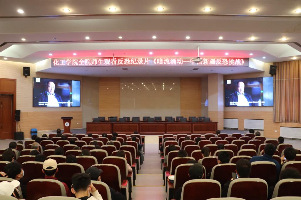 为引导全院师生坚定反恐信念,弘扬和平主义精神,激发爱党爱国热情,2007so太阳集团于4月15日下午15:00—22:00在化工楼报告厅组织全体师生分七批,共计2800余人集中观看反恐纪录片《暗流涌动--中国新疆反恐挑战》。