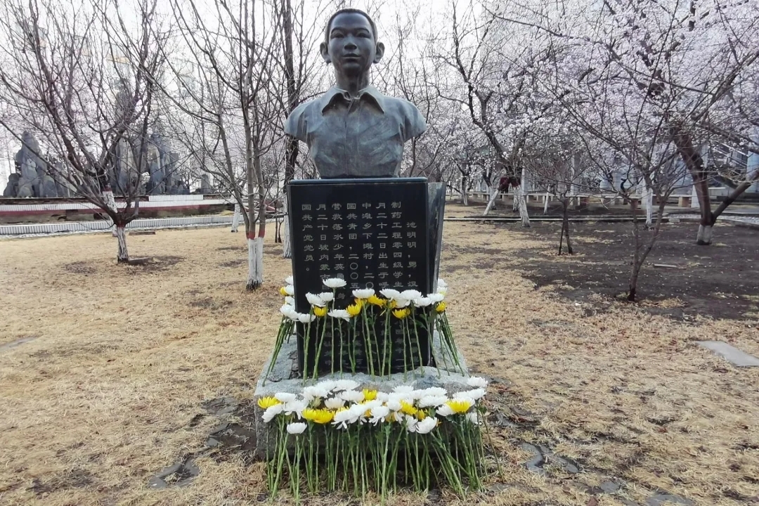 同学们全体肃立默哀,并依次向池明明的石像鞠躬、献上表达哀思的鲜花。每个人都在留言板上写下了自己的哀思。我院20级制药工程专业的学生以诗朗诵、演讲的形式表达了心中对池明明学长的钦佩,最后,哀悼活动在全体学生《假如爱有天意》的歌声中结束。池明明见义勇为的行为,展现了奉献自我、服务他人的赤子之心,展现了舍己救人、不怕牺牲的英雄气概,展现了勇于奉献、甘于奉献的高尚情操。同学们表示,此次在校内举行的纪念池明明学长的活动,汲取到了来自身边的强大精神力量。