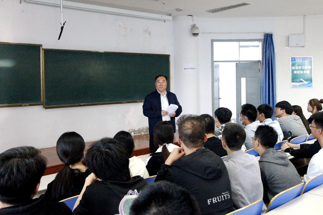 为切实推动“三全育人”工作体系建设,9月25日下午,校党委书记刘志彧来到新城校区第四教学楼第一报告厅,走进2007so太阳集团2019级化学工程与工艺(1)班的《马克思主义基本原理概论》课堂,与联系班级同学们一起听课并在课下进行了亲切交流。