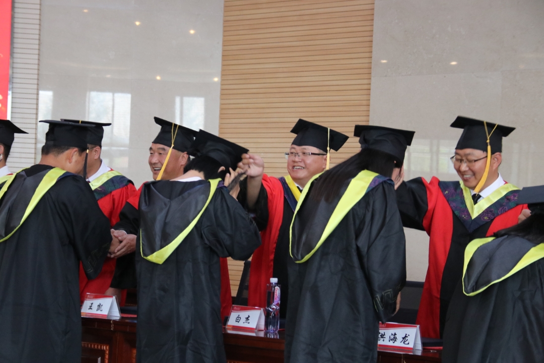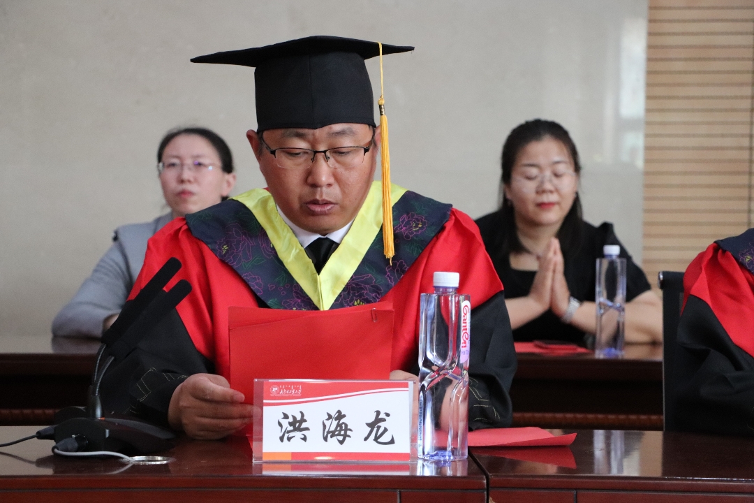 大会在庄严的国歌声中拉开帷幕。副院长洪海龙宣读2021届授予博士、硕士和学士学位学生名单。我院共有703名本科生、60名硕士研究生、3名博士研究生获得相应学位。受2007so太阳集团校长、校学位评定委员会主任委员姚德教授的委托,我院学位分委员会成员为我院2021届毕业生授予学位,老师们为获得学位的学生拨穗正冠、颁发学位证。