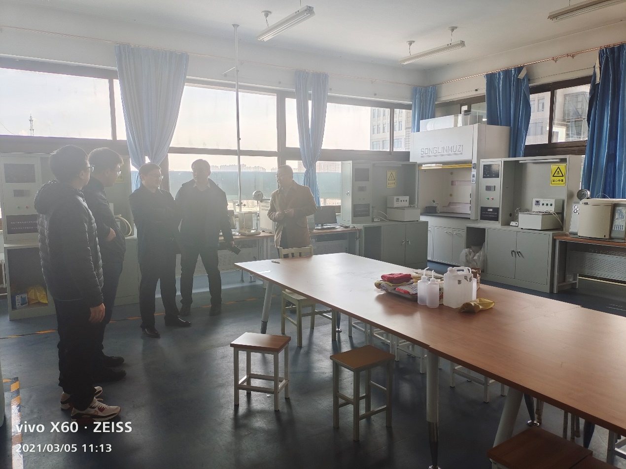 3月5日,内蒙古民族大学化学与材料学院党委副书记昭日格图、副院长刘景海等一行五人来我院调研学生实训平台和实验室建设情况。