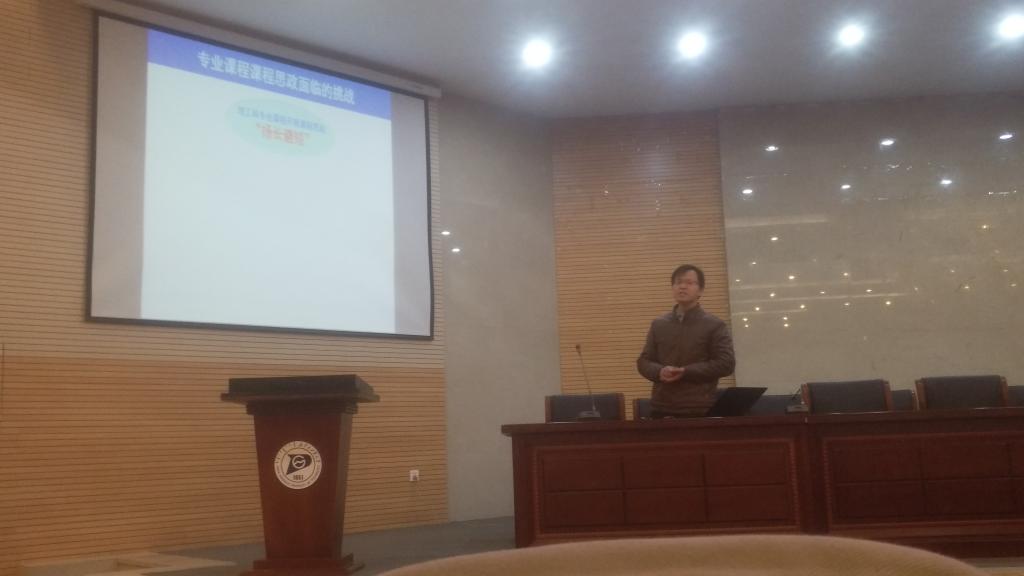 12月10日下午,学院在化工楼报告厅举办课程思政教学交流研讨会。胡宇强、周华从、解瑞俊三位老师分别以“课程思政的‘有机’结合”、“制药工程专业开展课程思政的思考与尝试”、“强化课程思政,服务立德树人”为题做交流发言。