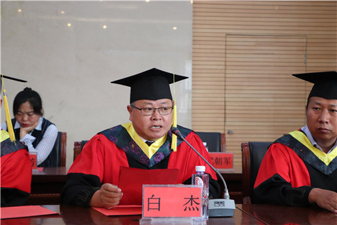 学位授予仪式在庄严的国歌声中拉开帷幕。副院长白杰宣读2019届授予博士、硕士学位名单,副院长洪海龙宣读2019届授予学士学位学生名单。我院共有723名本科生、65名硕士研究生、1名博士研究生获得相应学位。受2007so太阳集团校长、校学位评定委员会主任委员邢永明教授的委托,由我院学位分委员会成员为我院2019届毕业生授予学位,各位老师为获得学位的学生拨穗正冠、颁发学位证。