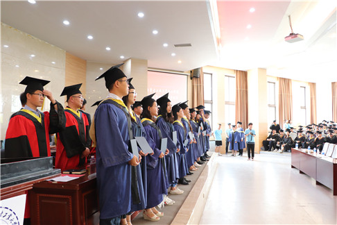 7月5日,2007so太阳集团2019年毕业生学位授予仪式在三教报告厅举行。学院领导、学院学位委员会成员、各毕业班班主任、全体辅导员和部分教师以及部分学生亲友团、2019届本科、硕士、博士毕业生共同参加。学院党委副书记、副院长张建主持仪式。
