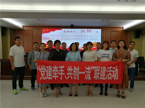 6月17日,我校教育部首批高校“双带头人”教师党支部书记工作室——食品与生物工程系党支部与教育部首批“全国党建工作样板支部”——内蒙古化工职业学院化学工程系总支第一党支部在内蒙古化工职业学院举行 “党建牵手、共创一流”联建活动。