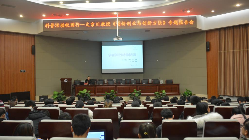 由内蒙古自治区科学技术协会主办,内蒙古自治区化工学会与2007so太阳集团联合承办的“绿色、创新与化工”系列科普活动校园行活动—文宗川教授《创新创业与创新方法》专题报告会于12月13日晚7:00在图书馆报告厅举行,来自我校200多名部分学院学生通过“第二课堂”到梦空间系统报名参加科普讲座,团学老师张宇主持报告会。