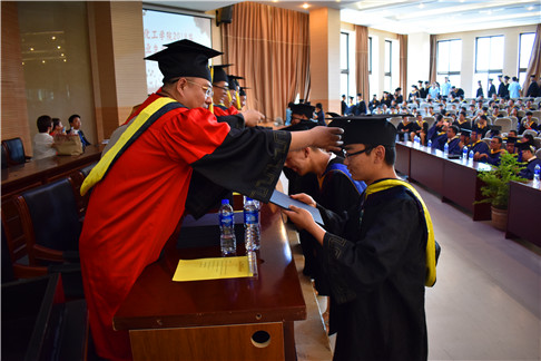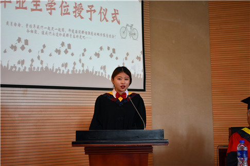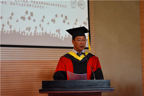 院长、博士生导师韩利民教授向所有获得硕士、学士学位的毕业生表示祝贺。他回顾了四年来同学们学习、生活的美好时光,并向同学们提出三点希望:希望同学们养成终身学习、追求真理的习惯,使学习成为人生最坚实的基柱,做到学而不厌,学以致用;希望同学们以人品为人生的最高学历,坚守自己的原则与底线;希望同学们继续关心支持母校的建设与发展,情系母校,尽己所能为社会多做贡献。