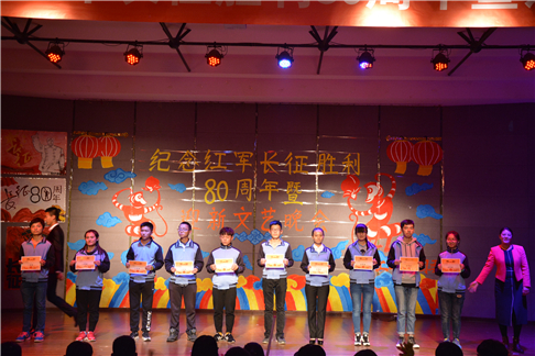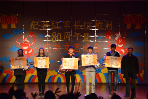 在晚会中,我院充分利用新媒体平台,对晚会进行了微博同步直播,并在现场进行微信“上墙”互动,同学们可以通过发送弹幕表达对节目的喜爱和对学院的祝福。通过对“长征胜利八十周年”有奖问答环节,更是调动学生们的热情,将晚会现场推向高潮。