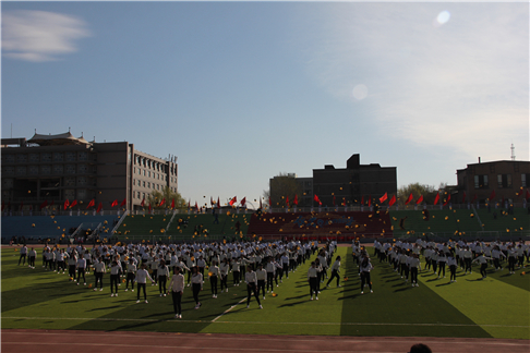院学工办齐越老师宣读精神文明评比条例,制药15级2班尹媛,过控15级1班孙猛分别代表全体运动员和裁判员宣誓。337名化工青年用90后独特的魅力,为大家带来耳目一新的开场舞《翻滚吧!打气君》,点燃会场激情,接地气的时尚元素,悦动的舞步,动感的音乐,举手投足间都是大学生的青春风貌。