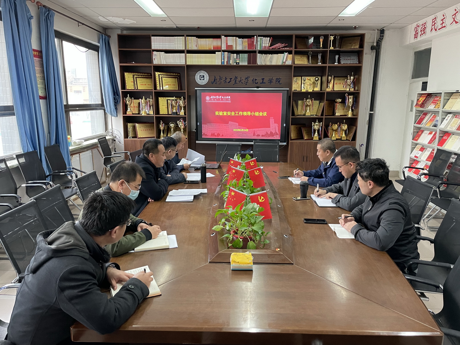 3月24日上午,学院在化工楼211召开实验室安全工作领导小组会议,学院党委书记王凯,院长白杰,副院长解瑞俊、冀国俊及领导小组成员参加会议。