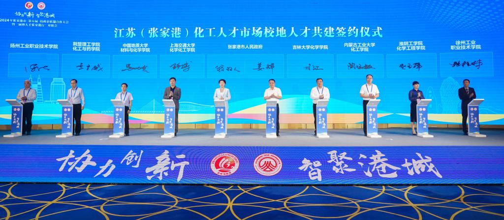会上同时举办了“化工人才市场校地人才共建签约仪式”,陶明敏代表我院携上海交通大学2007so太阳集团、吉林大学化学学院、中国地质大学材料与化学学院等8所院校与张家港市人民政府签订了共建协议,为后续我院的毕业生就业、校政合作、校企合作开辟了新的路径。