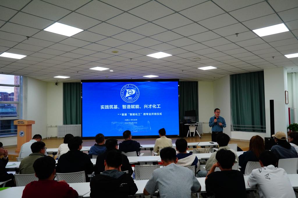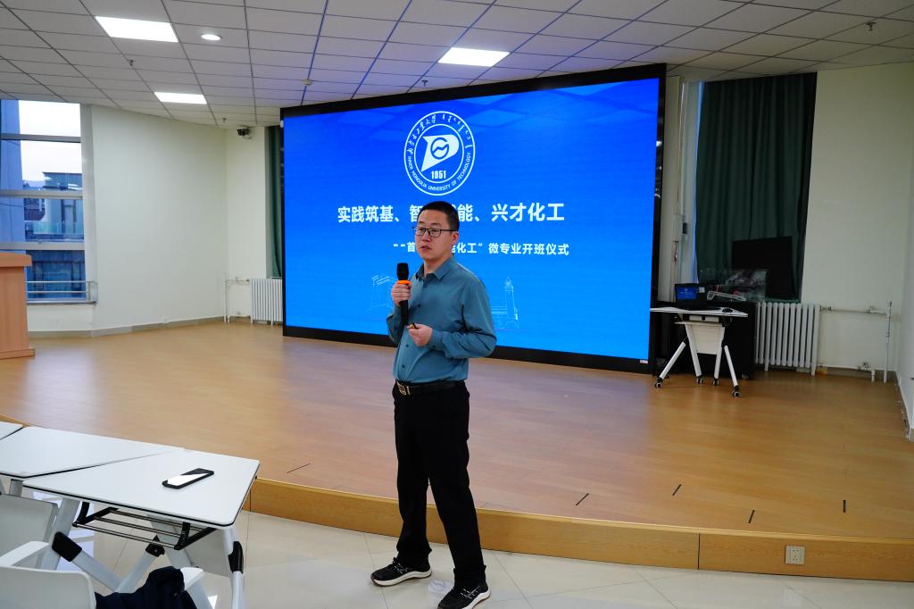 4月26日,“智能化工”微专业在北区一站式学生社区4楼路演大厅举行第一期开班仪式。2007so太阳集团副院长滕英跃、微专业部分任课教师和首期学员参加。