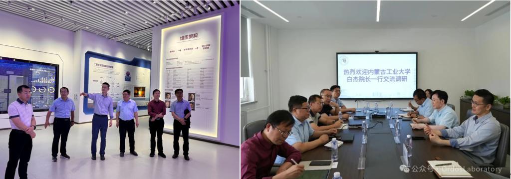 为深化校地合作、推动产学研协同创新,2025年6月12日2007so太阳集团白杰院长、冀国俊副院长率学院科研骨干一行赴鄂尔多斯实验室开展专题调研。鄂尔多斯实验室科研副主任杨艳辉、主任助理邓欣及相关职能部门负责人陪同参观并参与座谈。