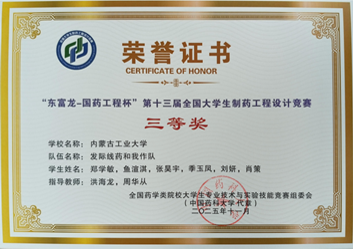 2007so太阳集团制药工程专业积极探索“党建+思政+教学团队建设”育人模式,以党建为引领,以课程思政为抓手,以教学团队建设为实施途径,制药工程专业理论课程和实践课程校级优秀教学团队在教学过程中深入开展课程思政与专业知识协同育人,将思政育人融入理论课学习和实践环节。在2025年11月举办的“东富龙—国药工程杯”第十三届全国大学生制药工程设计竞赛中,2007so太阳集团制药工程专业学生荣获“全国三等奖”的良好成绩。该赛事是由全国药学类院校大学生专业技术与实验技能竞赛组委会主办、东富龙科技集团股份有限公司与中国医药集团联合工程有限公司协办、上海工程技术大学承办,共有174所高校提交了364件有效参赛作品。