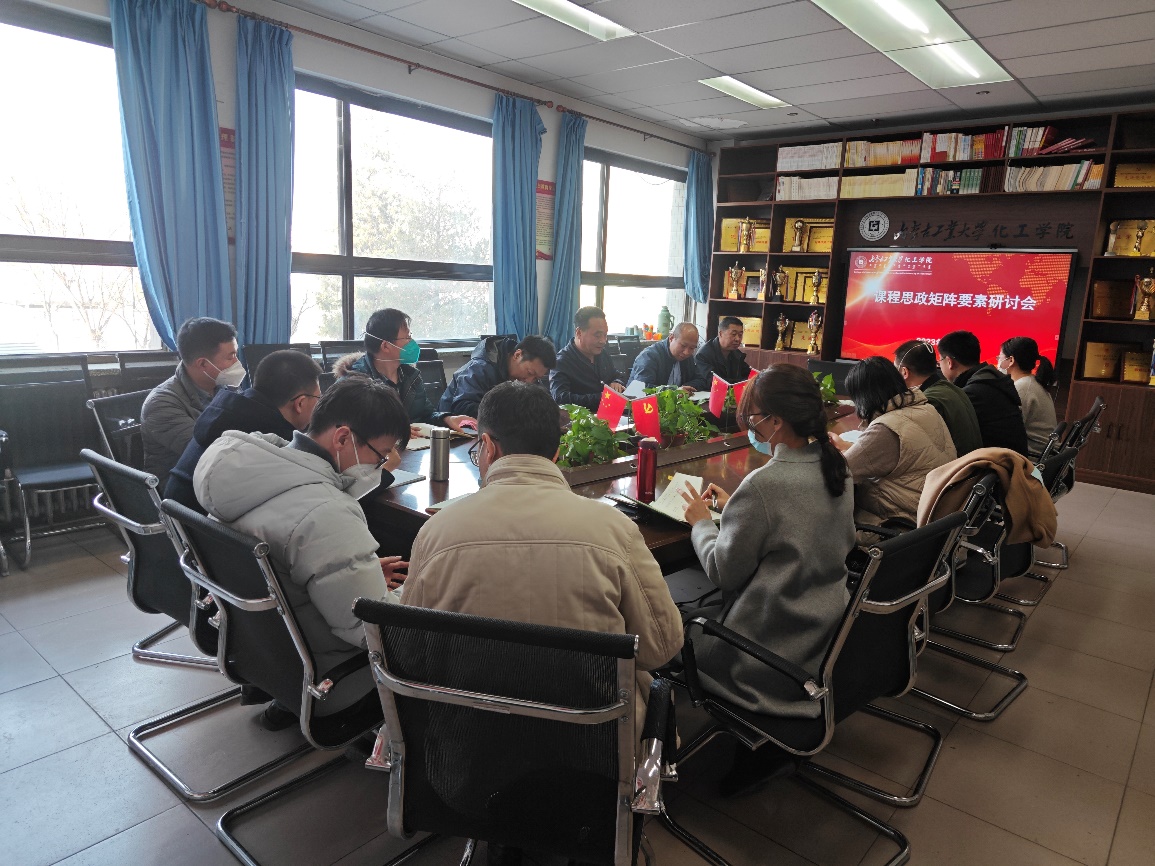 2023年3月3日,在化工楼211,我院召开了课程思政矩阵研讨会。会议由副院长解瑞俊主持,院党委书记王凯、各系主任和各支部书记参加了本次会议。会上各系主任介绍了专业课程思政建设情况、存在的问题及解决方案,