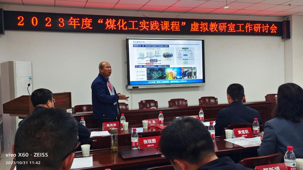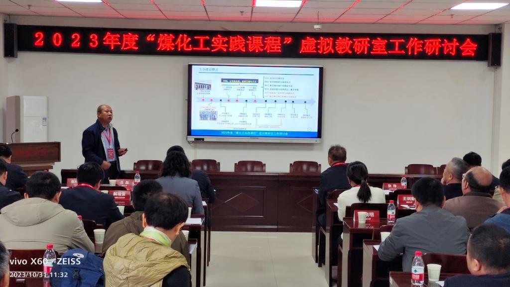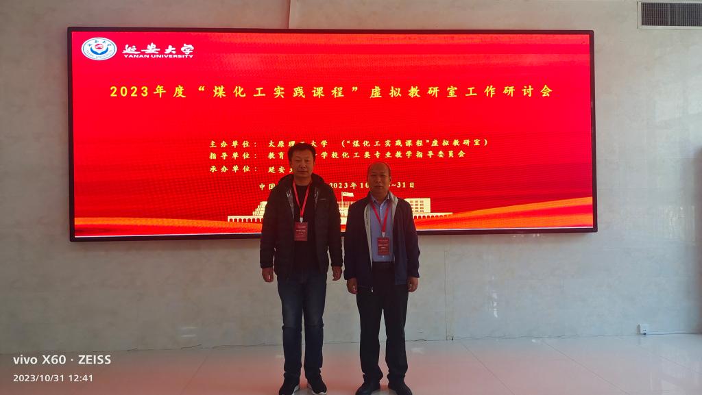 10月30-31日,由教育部化工类专业教学指导委员会指导,太原理工大学主办,延安大学承办的2023年度“煤化工实践课程”虚拟教研室工作研讨会在延安大学举行。作为虚拟教研室共建单位,我院副院长解瑞俊、教务办公室主任王威参加了研讨交流。解瑞俊作了题为“新型煤化工特色课程体系构建与实践”的交流报告。