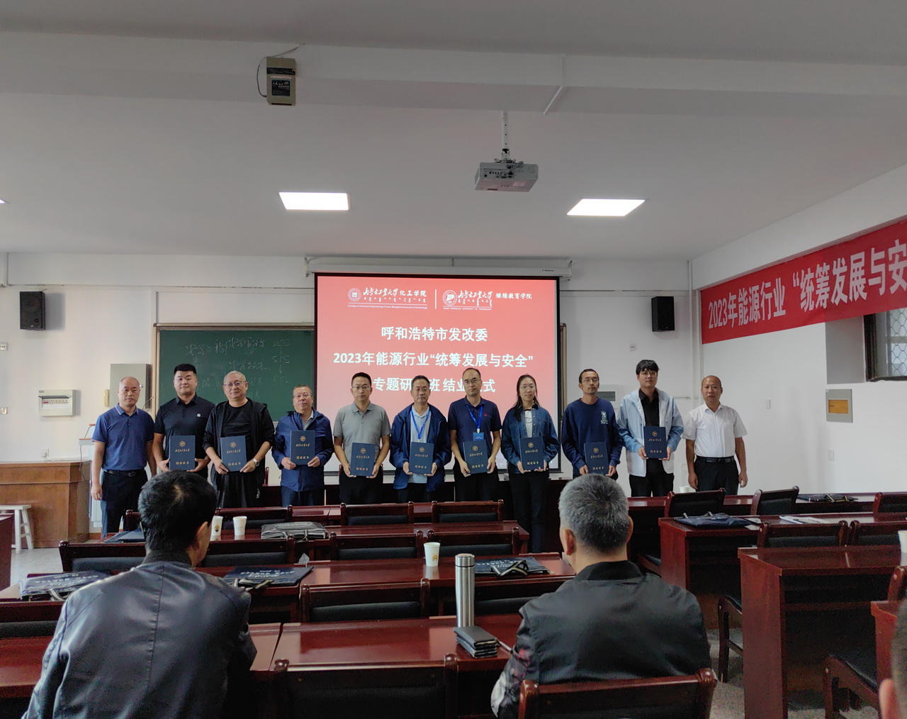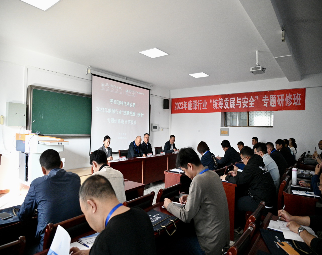 9月26-27日,呼和浩特市发发展和改革委员会2023年能源行业“统筹发展与安全”专题研修班在我院顺利举行。呼和浩特市发发展和改革委员会安全监管科科长许鲁贵,校继续教育学院院长王清华,2007so太阳集团党委书记王凯参加开班仪式,副院长解瑞俊参加研修班结业仪式并为学员颁发结业证书。