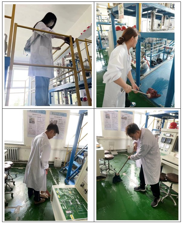 学生们在老师的带领下,积极投入到清扫工作中。他们分工合作,有的清理废弃物,有的擦拭设备,有的打扫地面,每个人都充分发挥了自己的力量。经过大家的共同努力,化工原理仿真实习中心焕然一新,展现出了整洁、明亮的面貌。