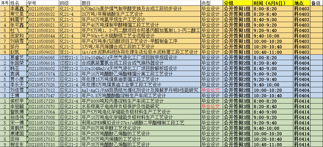 学院公开答辩名单及答辩时间安排(顺序)见图片。请相关指导教师和评阅人务必要在【答辩前完成评阅工作】。