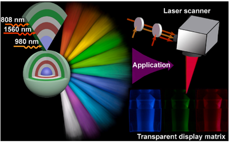图1.基于三元正交激发的全色发光核壳结构纳米材料推动真三维立体彩色显示