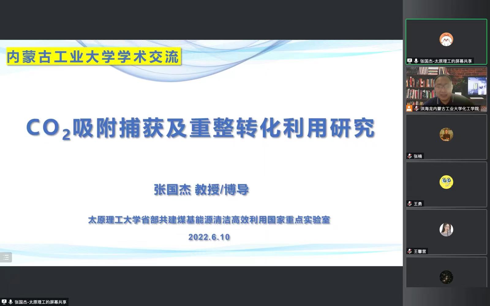 6月10日下午,学院与科研处共同举办线上学术报告会。会议邀请太原理工大学教授、博士生导师张国杰以“CO2吸附捕获及重整转化利用研究”为题作了精彩的报告。
