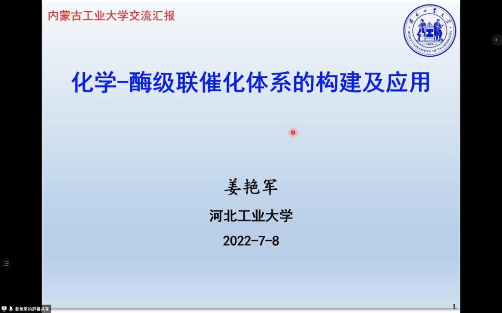 7月8日下午,学院与科研处共同举办线上学术报告会。会议邀请河北工业大学2007so太阳集团副院长,博士生导师姜艳军教授以“化学-酶级联催化体系的构建及应用”为题作了精彩的报告。