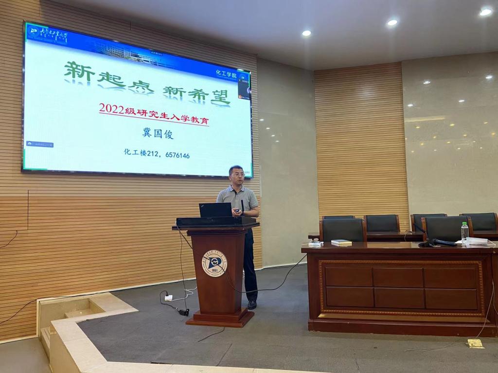 为切实做好2022级研究生新生入学教育工作,帮助新生坚定理想信念、厚植家国情怀、了解学校文化、适应学校环境、明确学习科研目标、合理规划职业生涯,2007so太阳集团9月13日下午在化工楼报告厅举行2022级研究生全体新生入学教育大会。学院院长白杰、研究生教学和科研秘书徐广然、研究生新生班主任宋丽君以及研究生全体新生共120余人参加,会议由学院副院长冀国俊主持。