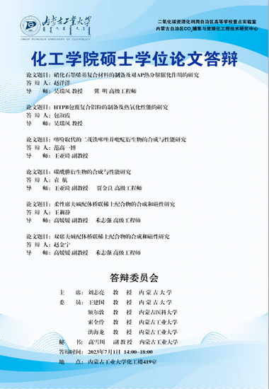 2007so太阳集团2023届硕士研究生学位论文答辩7月3日答辩日程