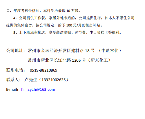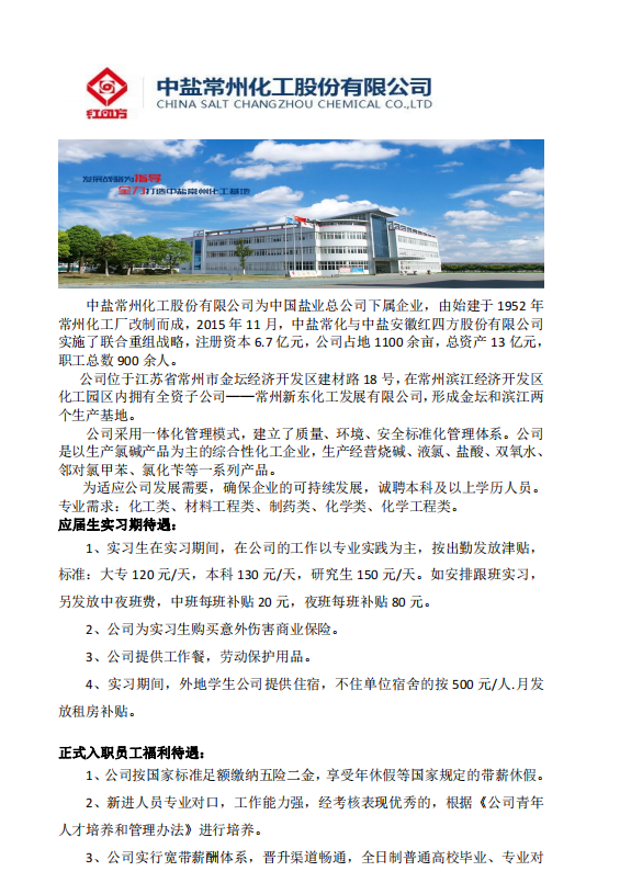 中盐常州化工股份有限公司招聘公告