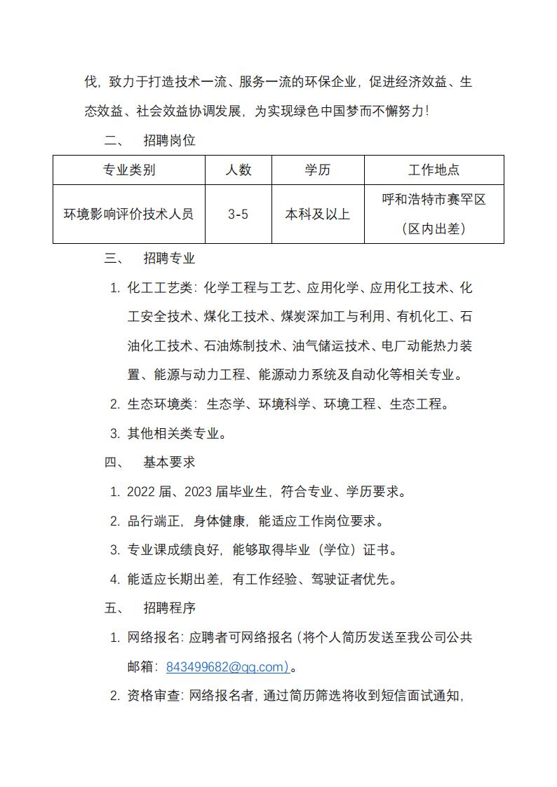 内蒙古福木源生态环境技术有限公司校园招聘公告
