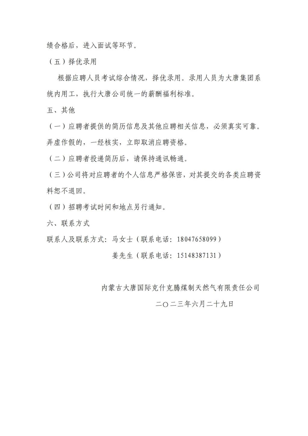 内蒙古大唐国际克什克腾煤制天然气有限责任公司2023年度高校毕业生招聘简章