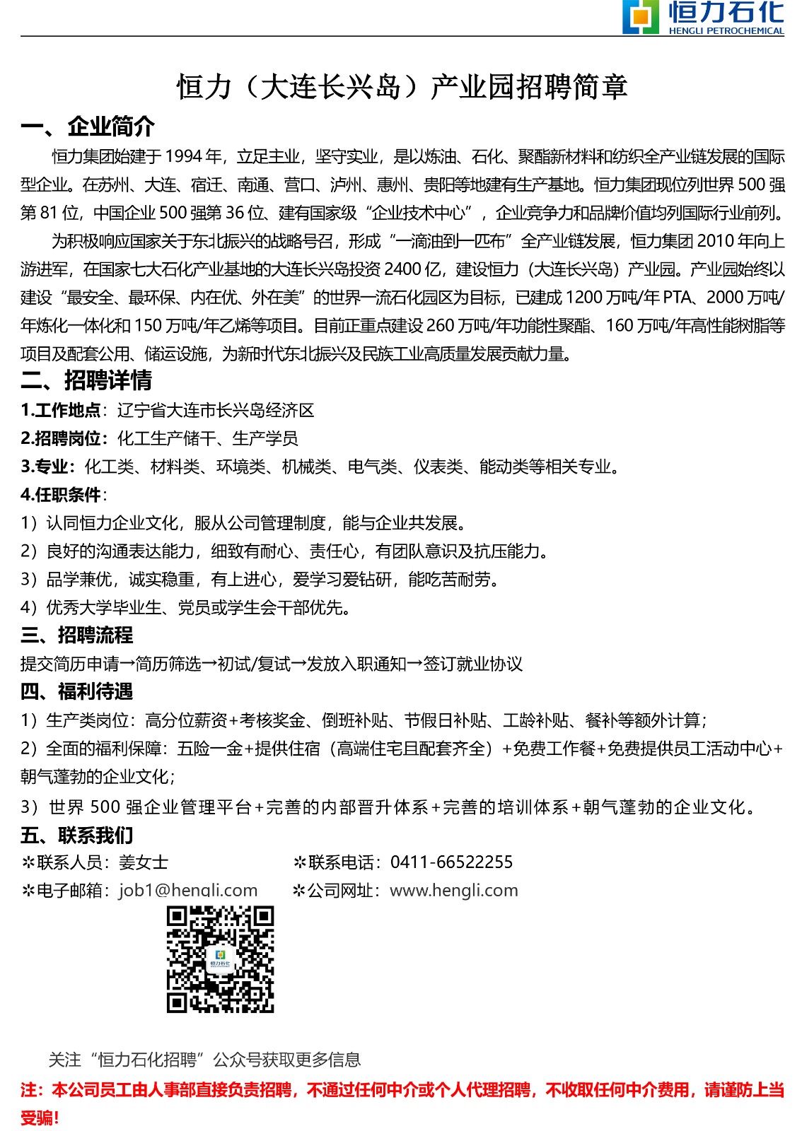 恒力石化(大连)有限公司招聘公告