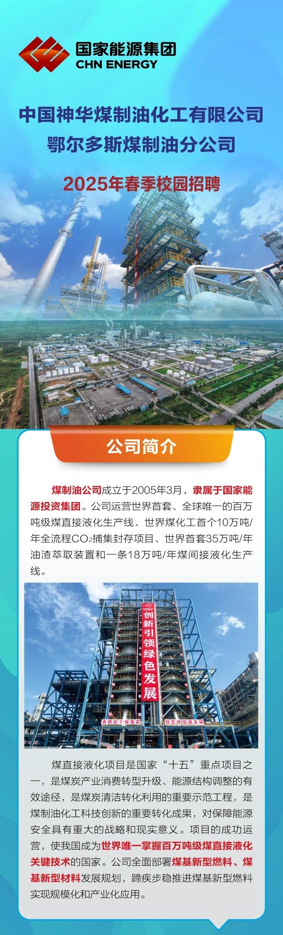 中国神华煤制油化工有限公司鄂尔多斯煤制油分公司2025年春季校园招聘