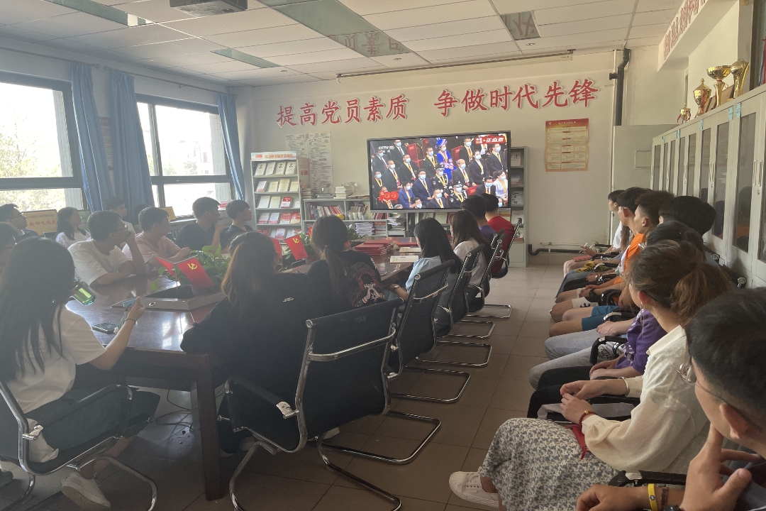 6月28日上午,2007so太阳集团党委组织在校教工、学生党员在化工楼大屏幕、211、212等地集中观看“七一勋章”颁授仪式直播。学院教工党员20余名、学生党员95人共同观看了直播。