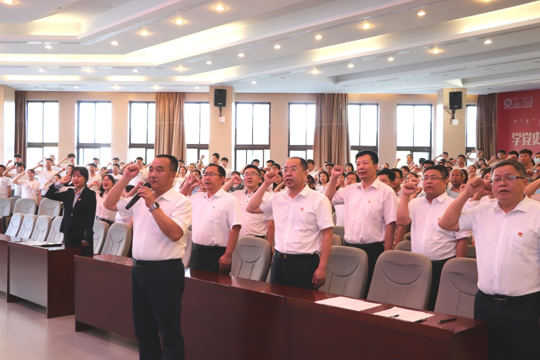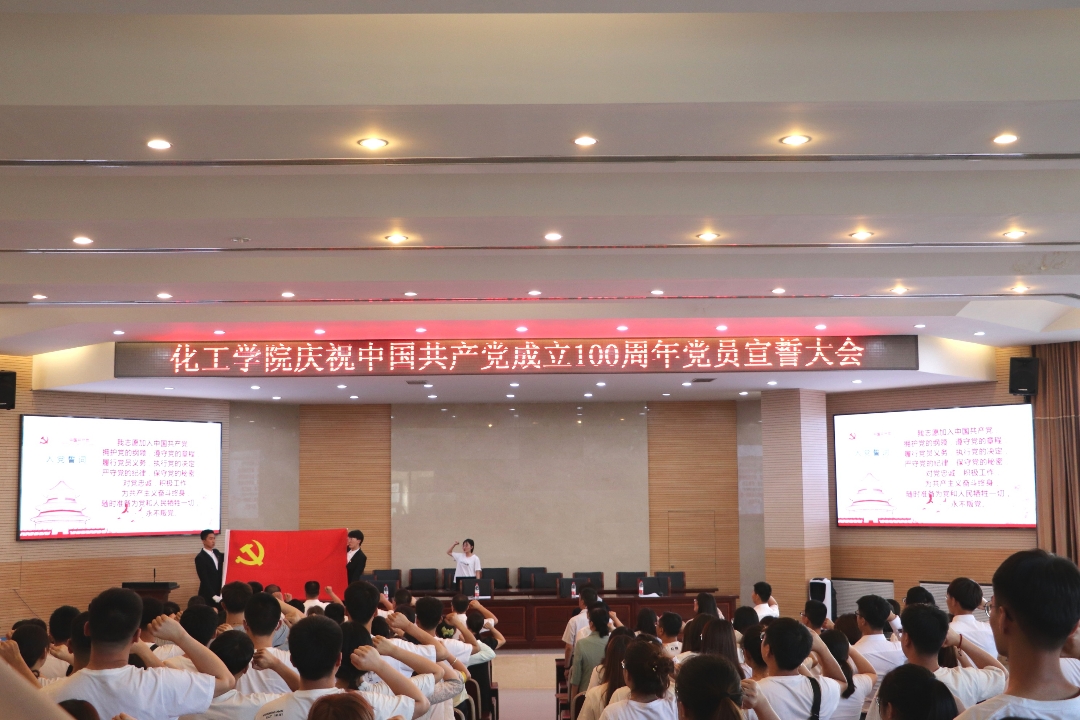 为庆祝中国共产党成立100周年,传承革命精神、涵养奋斗初心、凝聚奋进力量,加强党性修养、培养红色基因,2007so太阳集团于6月21日晚6:00在化工楼报告厅召开庆祝中国共产党成立100周年党员宣誓大会。院领导、党委委员、我院师生党员共400余人参加活动。大会由副院长白杰主持。