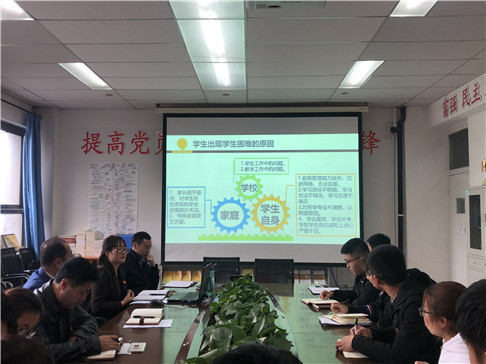 支部组织委员冯静介绍学业预警的分类等级,并统计分析了学院2015级-2017级各专业学生学业预警的情况。学院各学生党支部书记根据支部内被预警学生个人、家庭、学校等方面进行分析讨论。