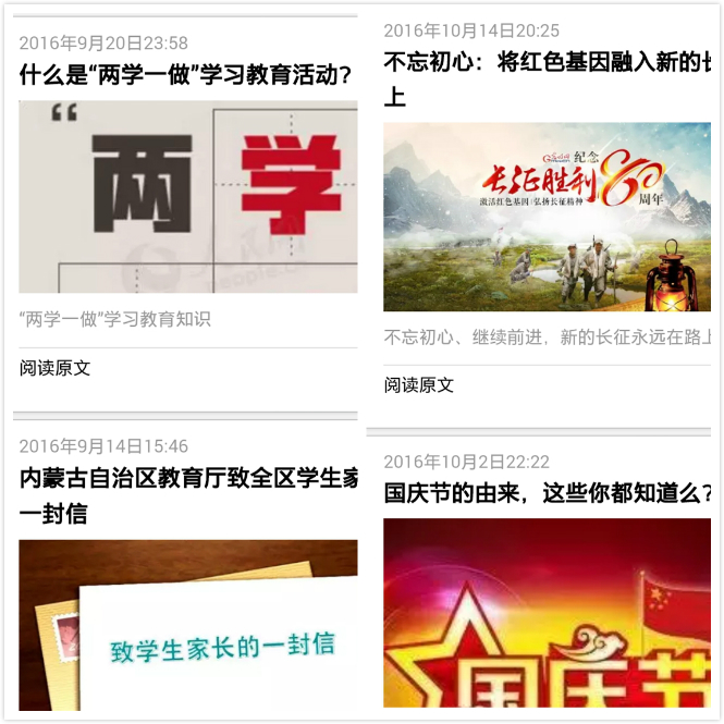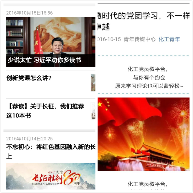 试运行期间,“化工党员微平台”每天定时推送权威资讯、热点聚焦和学习参考内容,传播党的方针政策,信息丰富、便捷高效、富有趣味,内容紧跟时代步伐,为广大党员提供了随时、随地、随身的学习方式,打破了学习教育的时空限制,为基层党员干部提供在线学习交流的新渠道,受到我院师生党员、入党积极分子、学生干部等群体的广泛关注与欢迎。